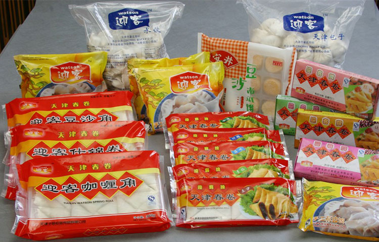 天津市第1食品加工廠是國內(nèi)較早開發(fā)與研制速凍食品的廠家,“迎客”牌速凍食品以其精選原料、講求工藝、精細加工、可靠質(zhì)量,暢銷國內(nèi),并出口日本、美國、韓國、澳大利亞、加拿大、香港等國家和地區(qū)。產(chǎn)品及品牌先后榮獲“商業(yè)部優(yōu)質(zhì)產(chǎn)品金鼎獎”、“天津市優(yōu)質(zhì)產(chǎn)品”、“天津人較喜愛的消費品”、“全國十大城市消費者較喜愛的天津產(chǎn)品”、“天津市暢銷產(chǎn)品品牌”、“質(zhì)量百優(yōu)示范產(chǎn)品”、“社會公認滿意產(chǎn)品”、“天津市著名商標”等稱號。是星火天津食品包裝機械的客戶,QLF-700A氣動封口機用于迎客咖喱角、天津春卷、水餃、南瓜餅等的袋裝封口。