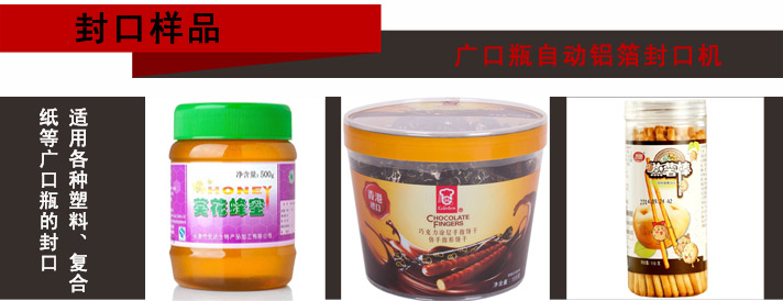 廣泛應用于食品、飲料行業中各種塑料、復合紙等廣口瓶容器的熱合封口,具有防潮、防漏、延長產品保質期以及防盜、防偽的作用