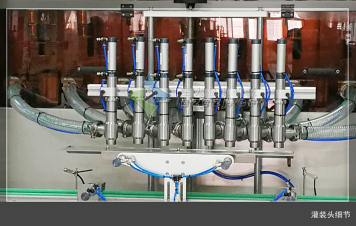 5、灌裝悶頭采用防滴漏、防拉絲灌裝裝置,是豆豉醬、辣椒醬、辣椒醬等顆粒醬料灌裝的較佳灌裝生產(chǎn)線。